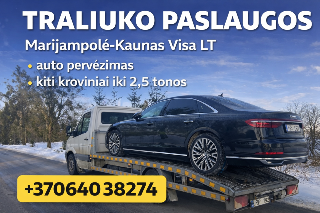 Traliuko paslaugos. Tralas Marijampolė - Kaunas, ir visa Lietuva. Automobilių pervežimas. Kitų krovinių iki 2,5 tonos pervežimas (statybinės medžiagos, technika).